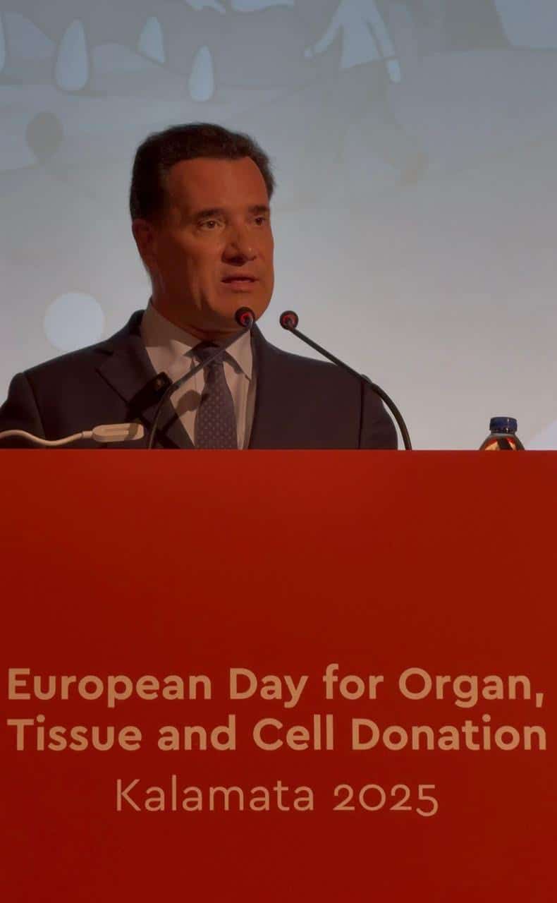 Ο Υπουργός Υγείας Άδωνις Γεωργιάδης συμμετείχε σήμερα, Παρασκευή 10 Οκτωβρίου 2025, στην εκδήλωση για την Ευρωπαϊκή Ημέρα Δωρεάς Οργάνων, Ιστών και Κυττάρων, που διοργανώνεται φέτος στην Καλαμάτα από τον Ελληνικό Οργανισμό Μεταμοσχεύσεων (ΕΟΜ), υπό την Αιγίδα της Βουλής των Ελλήνων και στο πλαίσιο πρωτοβουλίας του Συμβουλίου της Ευρώπης.