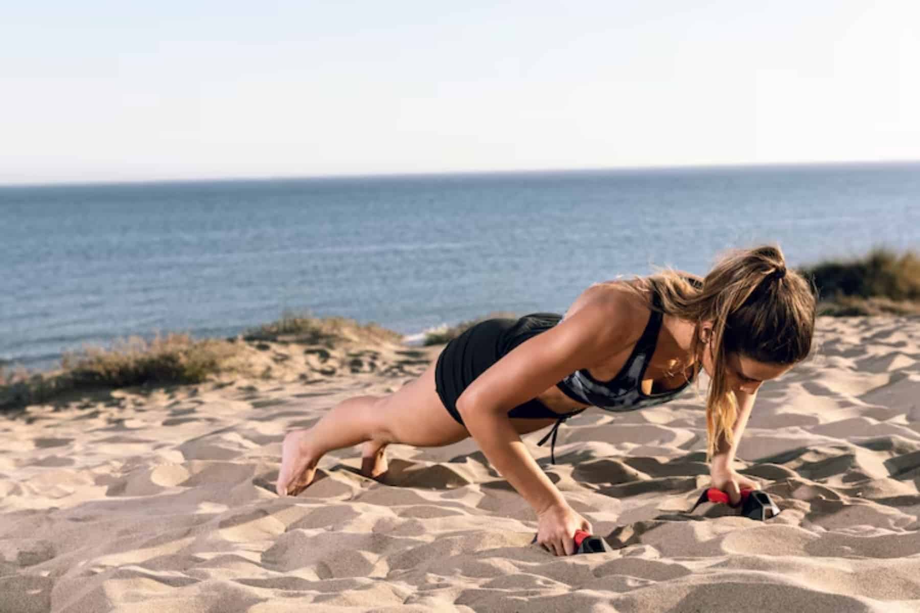 Ασκήσεις ενδυνάμωσης: Κάμψεις, κοιλιακοί, προβολές και squats μπορούν να γίνουν σε οποιοδήποτε σημείο της παραλίας. Η μαλακή άμμος αυξάνει την αντίσταση και κάνει την προπόνηση πιο απαιτητική.