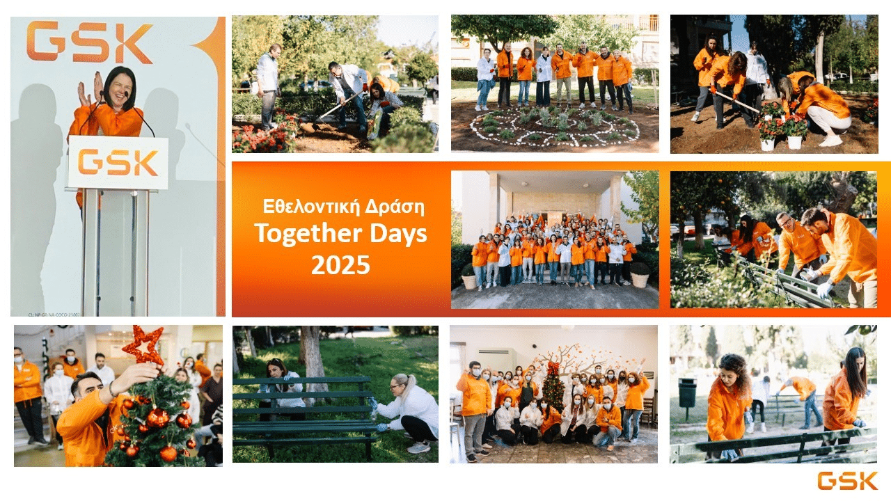 Με πρωτοβουλίες όπως το “Together Days 2025”, ηGSK Ελλάδος συνεχίζει να επενδύει σε εθελοντικές πρωτοβουλίες οι οποίες ενισχύουν την κοινωνική συνοχή, στηρίζουν τις ανάγκες των ευάλωτων ομάδων και προάγουν το πνεύμα της συλλογικής συνεισφοράς.
