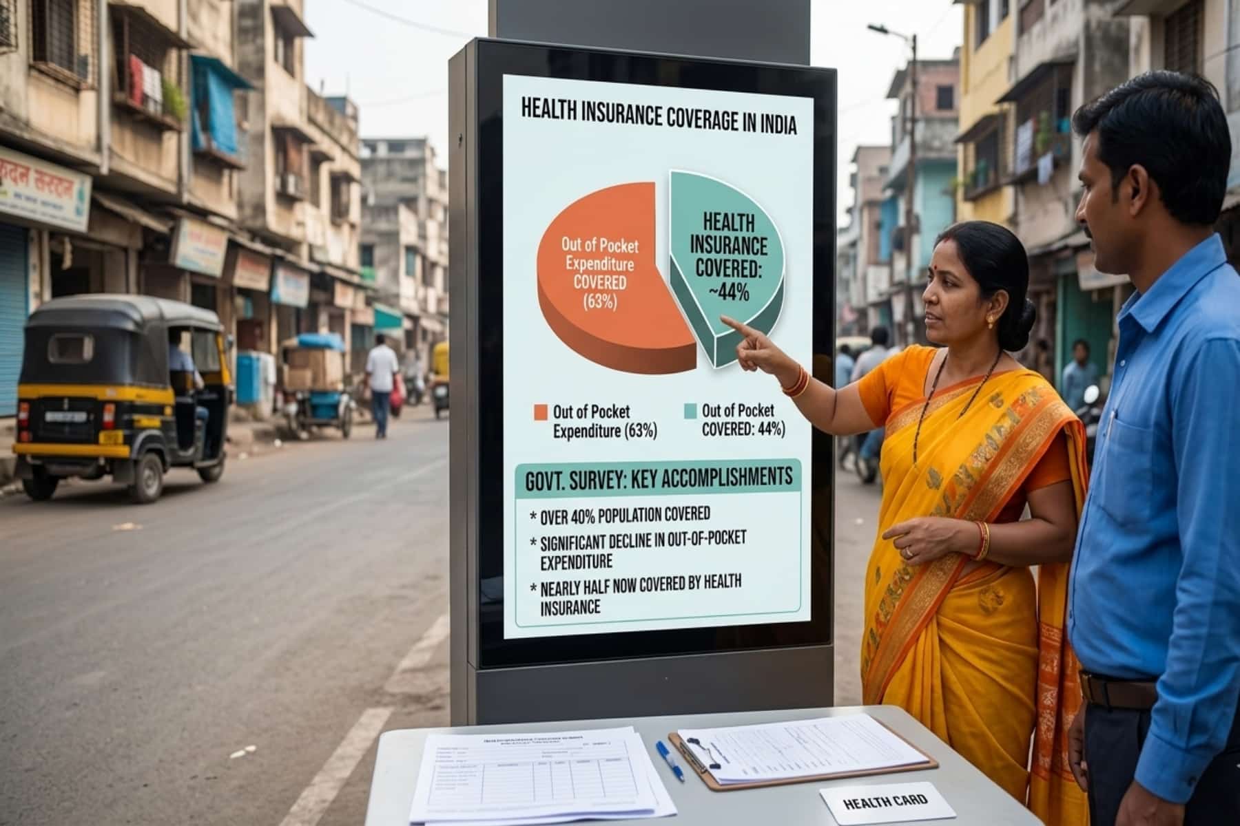 Ένας από τους μεγαλύτερους κινδύνους για τα ινδικά νοικοκυριά ήταν ανέκαθεν η «ιατρική φτώχεια». Συχνά, μια σοβαρή ασθένεια ή ένα χειρουργείο αρκούσαν για να εξανεμίσουν τις οικονομίες μιας ολόκληρης ζωής ή να οδηγήσουν μια οικογένεια στον δανεισμό. Με την κάλυψη του 44% έως 50% του πληθυσμού, παρατηρείται μια σημαντική τάση μείωσης των άμεσων πληρωμών από τους πολίτες.