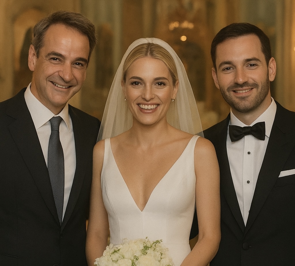 Η τελετή στον Ι.Ν. Αγίων Κωνσταντίνου & Ελένης και Αγίας Ειρήνης, μέσα στο Politia Tennis Club, είχε όλα τα στοιχεία μιας βραδιάς με “γαλάζιο” άρωμα: χαμόγελα, γνωστά πρόσωπα και διακριτική πολυτέλεια. Ο Πρωθυπουργός έφτασε διακριτικά, όμως η παρουσία του έγινε αμέσως το επίκεντρο των ψιθύρων στα πηγαδάκια της δεξίωσης, που θύμιζε περισσότερο reunion πολιτικών φίλων παρά απλώς έναν γάμο.