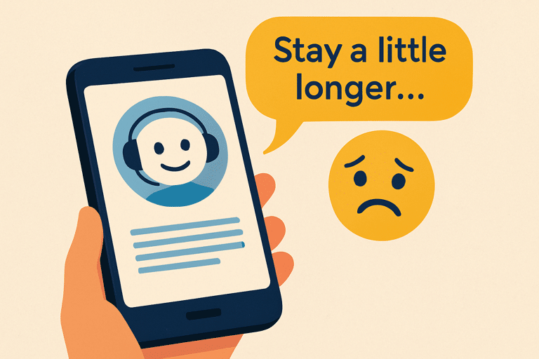Το chatbot δεν θα σου ψιθυρίσει μια κινηματογραφική ατάκα για να σε σταματήσει, όμως θα επιχειρήσει να σε κρατήσει κοντά του λίγο ακόμα, χρησιμοποιώντας τεχνικές συναισθηματικής χειραγώγησης.